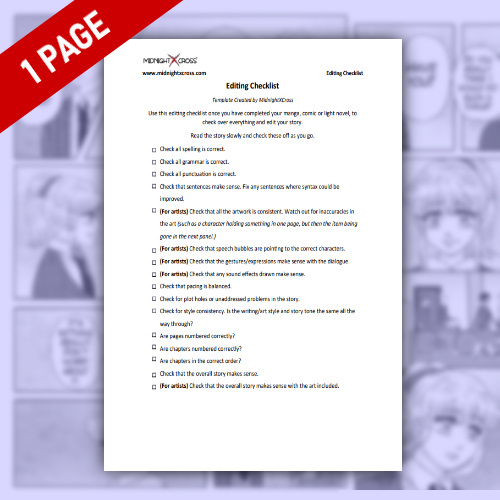 This checklist can help you with the process of editing your manga, comic or light novel. Whether you are planning to publish, self publish, or upload your book online, this checklist will help you to prepare everything you need, and remain organised as you do it.